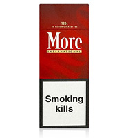 More cigarettes have a light, delicate flavor and aroma. Their odor is more than simply that of an average cigarette. When smoking these cigarettes, you feel that you dare for "More." Since their introduction in 1975, the stylish, prestigious More cigarettes have become one of the most popular 120s cigarettes. When More cigarettes were launched, the brand was targeted at women. The first advertisement for More cigarettes pictured an elegant woman holding a brown More cigarette. The slogan read "Dare to be More." These cigarettes stood out in contrast to the usual white cigarettes. Their 120mm size also caused people to take notice. This was the first tobacco product to be successfully marketed in this size. More cigarettes were designed to be slimmer and longer than other tobacco brands.