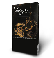 Vogue Cigarettes stand out among other cigarette brands with both their appearance and their unique, recognizable taste. These fashionable quality smokes are all about softness - from their soft, eye-catching design to their smooth, pleasant smoke which might happen to be the one you've been looking for. Vogue Cigarettes all-white box design incorporating a tiny branch with leafs painted in different colors-from green to blue, depending on the flavor that's inside the pack, gives a truly romantic essence that Vogue Cigarettes represent. The tobaccos and additives used in Vogue Cigarettes are of the highest quality and the smoke is fulfilling and relaxing.